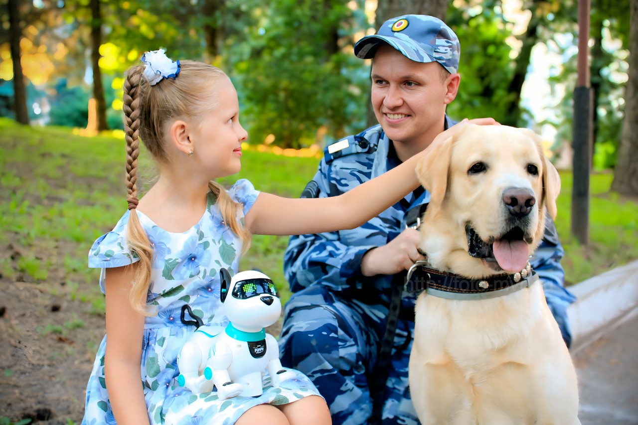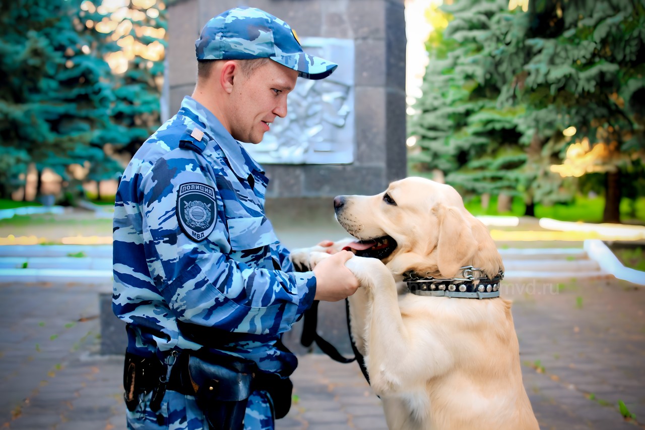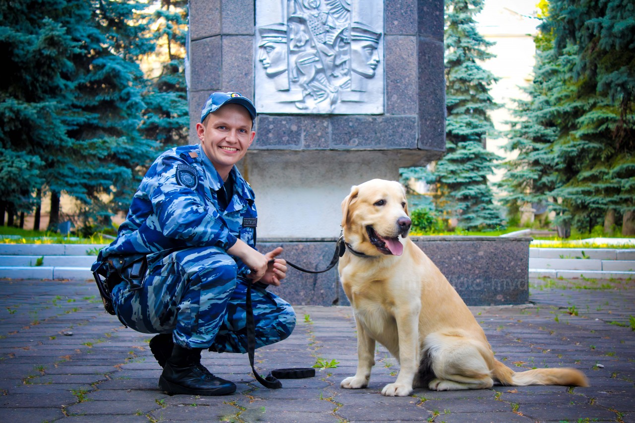 Морозова Е.С- НП Полицейский кинолог Пысин Андрей со своим напарником лабрадором-ретривером Риччи в сквере Мужества