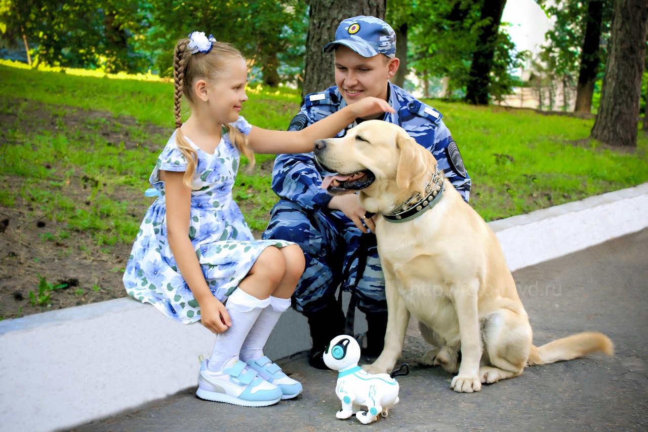 Морозова Е.С- НП Полицейский кинолог Пысин Андрей со своим напарником лабрадором-ретривером Риччи в сквере Мужества